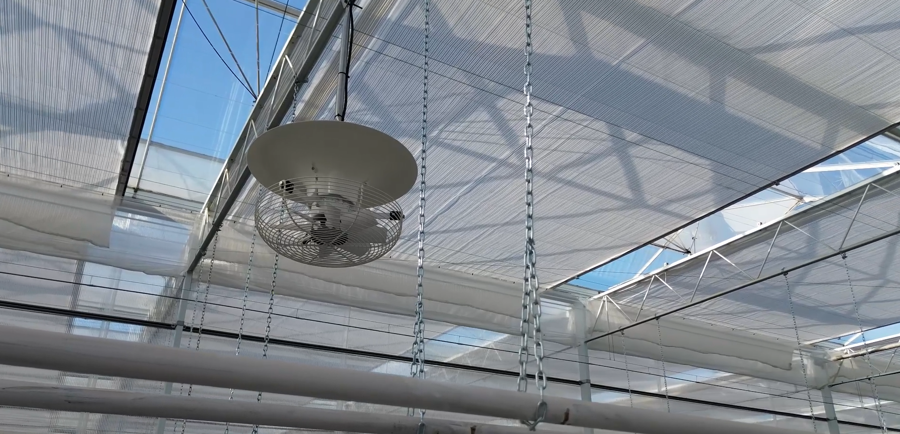 El aire en movimiento será clave para mantener un ambiente óptimo. Incorporamos recirculadores de aire horizontales en las antesalas y recirculadores verticales en el interior del invernadero. Estos dispositivos crearán microclimas activos, reduciendo la humedad y optimizando los costes energéticos al mejorar la distribución del aire. Además, hemos instalado un sistema de nebulización de alta presión, conocido como Fog System, que mantendrá condiciones de humedad óptimas para el cultivo de frambuesas, ayudando a controlar la temperatura y reduciendo el estrés hídrico en las plantas.