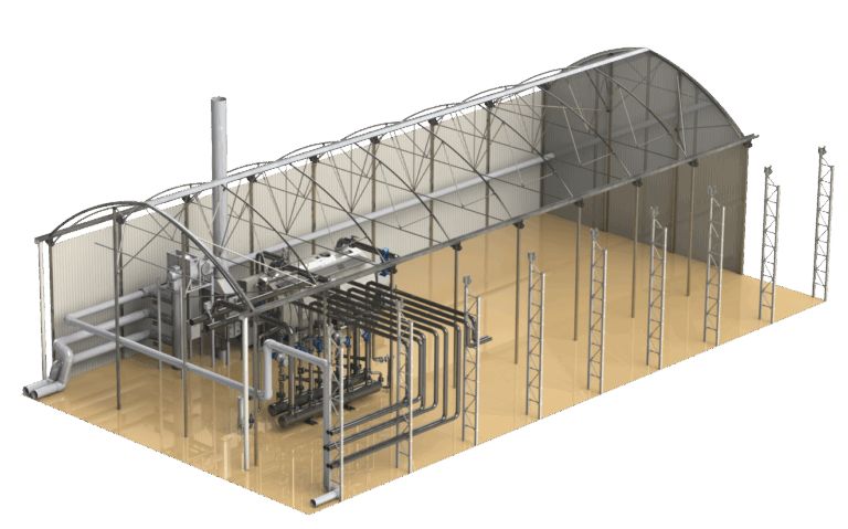 - Equipamiento completo, con depósitos, calderas, tuberías, generadores…